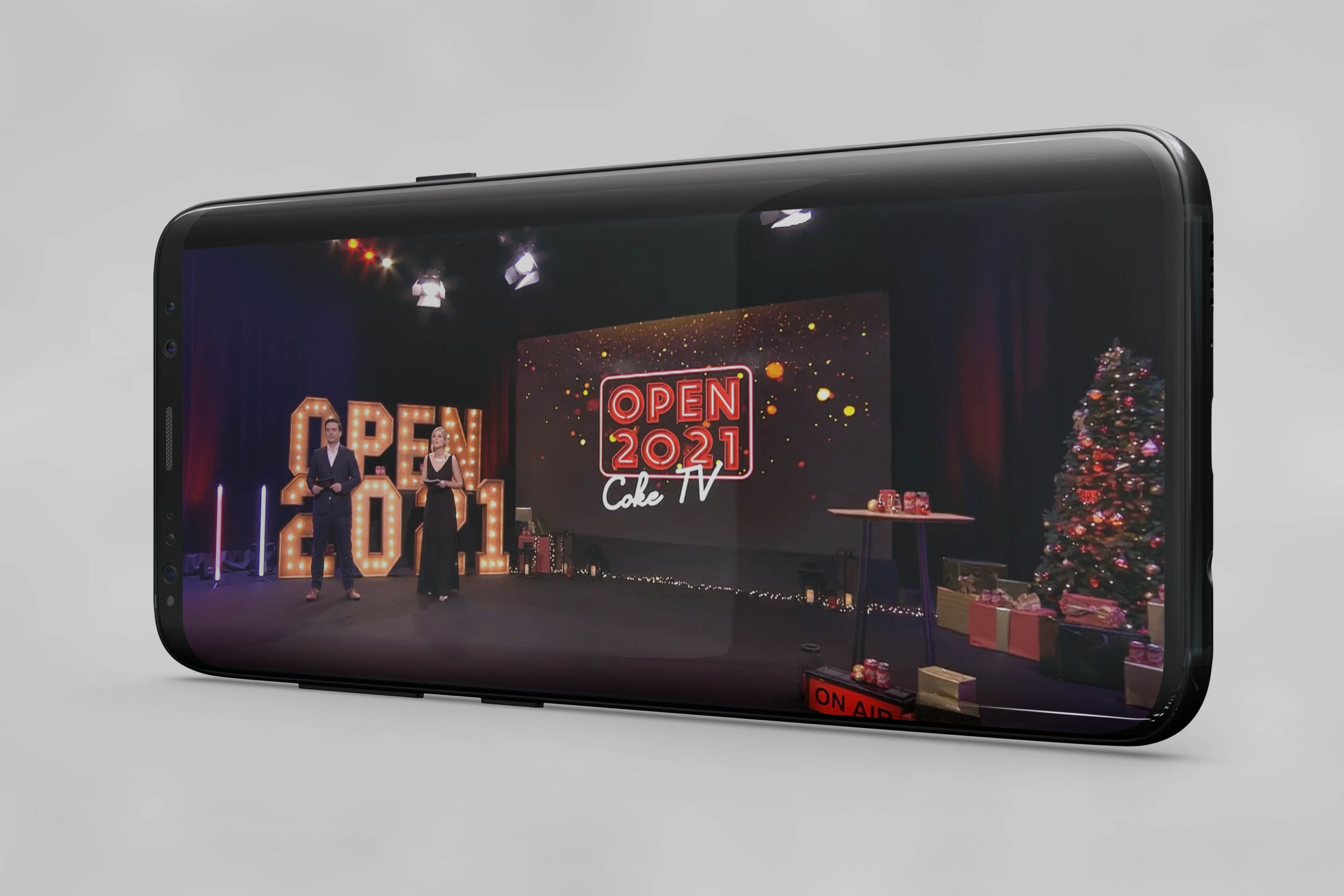 Identité visuelle pour l’évènement Cola-Cola Open Live, fêtes de fin d’année 2021. Vidéo diffusion organisée par DDMC et destinée à l’équipe de Coca-Cola European partner suite à la pandémie.