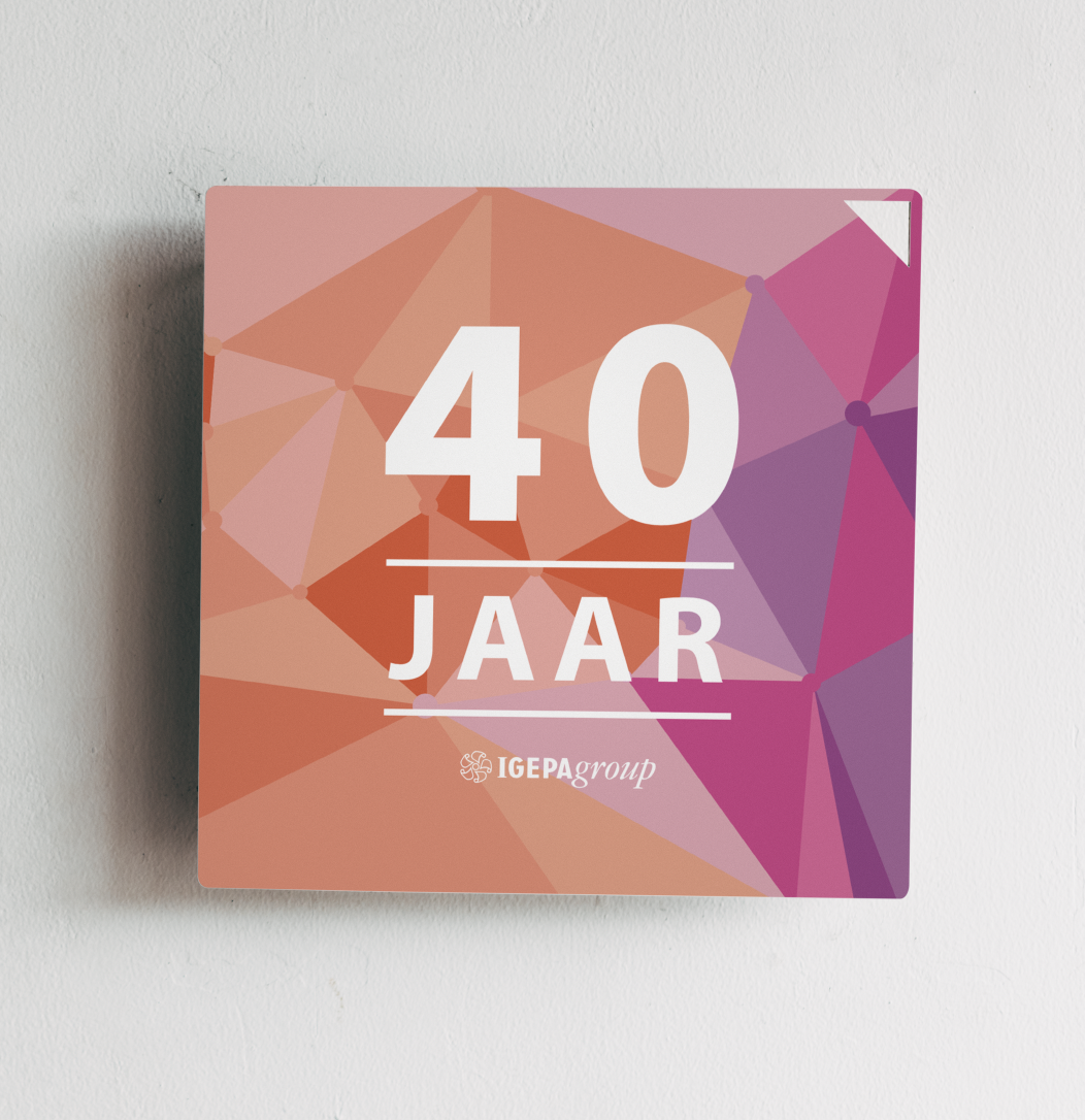 Création de la charte graphique des 40 ans d’IGEPA Belgium. Entreprise spécialisée dans la communication visuelle, le papier de bureau et l’emballage.