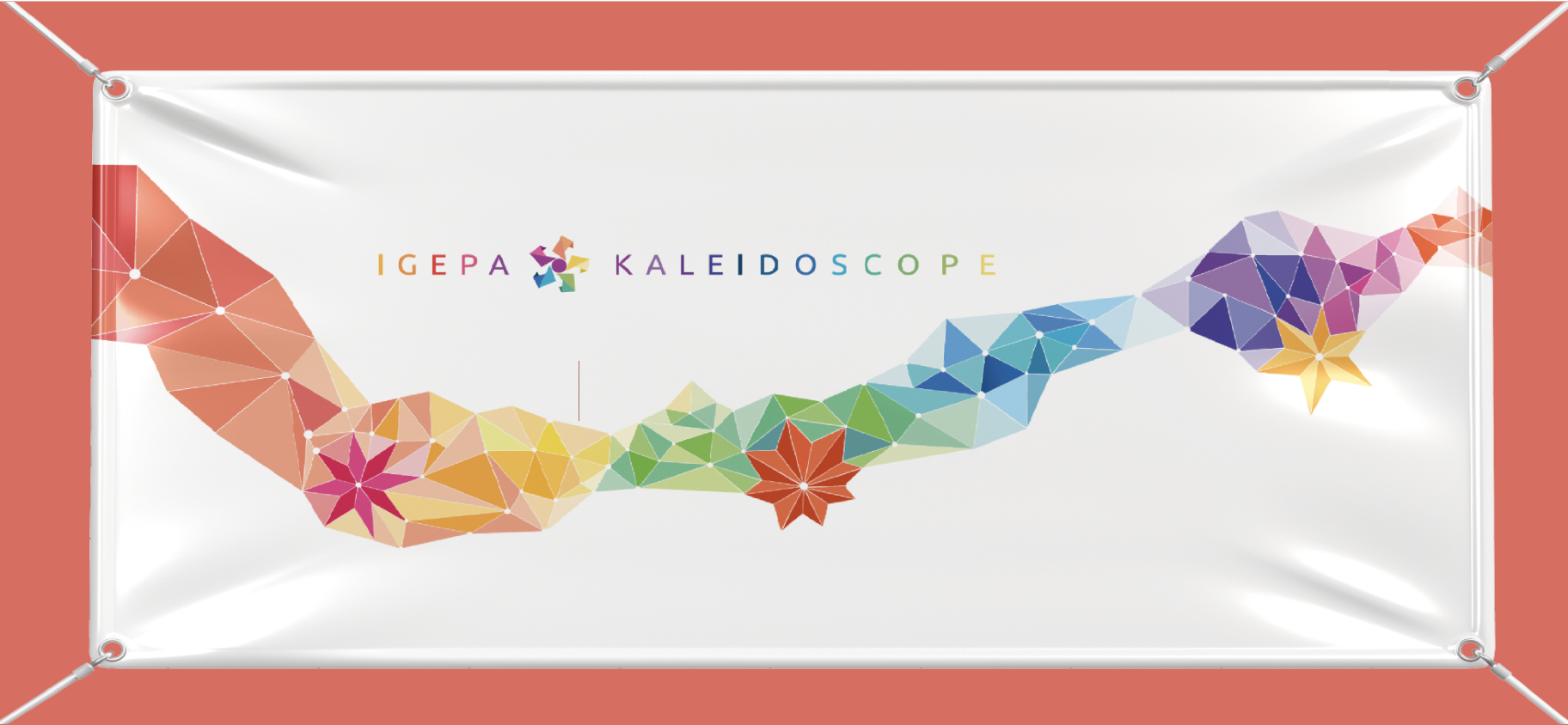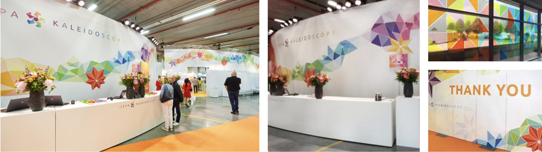 La thématique était Kaléidoscope : Il s’agissait de concevoir le logo et l’identité de l’évènement. S’en est suivit la signalétique, invitation, badges, stands, bâches de 6 mètres.